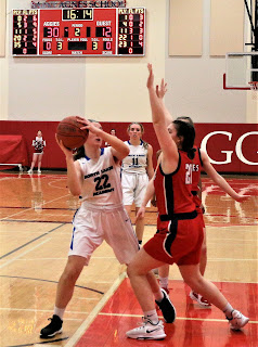 IT WAS AGGIES FOR GIRLS SECTIONAL BASKETBALL ASTHEY HOSTED THE HUCKIES OF NORTH LAKE ACADEMY OF FORREST LAKE MINNESDOTA WITH A 55- 36 VICTORY TO OPEN THERE SECTIONAL. HIGH SCORE WITH16 POINTS JR. FOR THE AGGIES MARIA DIPIETRO ROUNDING OUT THE SCOREING FOR THE AGGIES FR, WITH 12 POINTS TERESE FISCHER. HIGH FOR THE HUSKIES GRACE TIMM JR. WITH 9 POINTS.